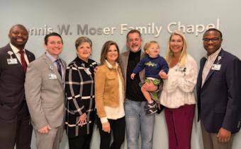 Naming of Atrium Health Union West Chapel Community members came together to celebrate the naming of the Dennis W. Moser Family Chapel at Atrium Health Union West. A longtime resident of Union County, Dennis Moser was inspired to make a meaningful gift to support the hospital. His family’s generosity will provide patients and families with a tranquil space for meditation, reflection, and prayer.