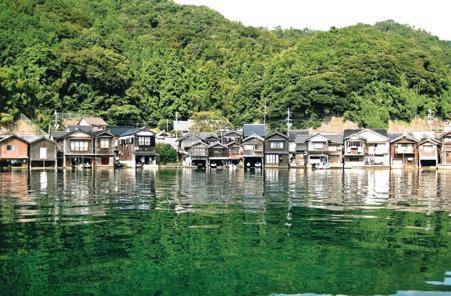 About 230 boat houses lining the shore of Ine Bay offer amazing scenery that cannot be found anywhere else. Funaya is a unique construction with the first floor on the wa ter serving as a fishing boat garage and the second floor a residence area. The village is also called “Venice of Japan.”