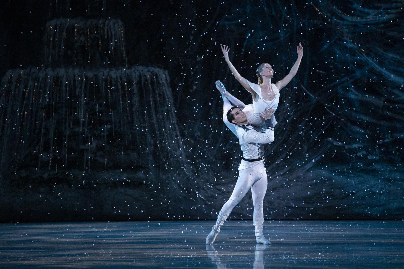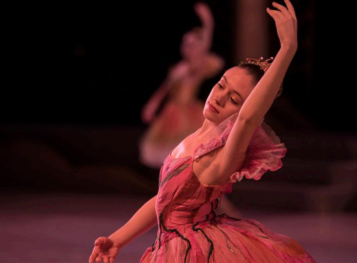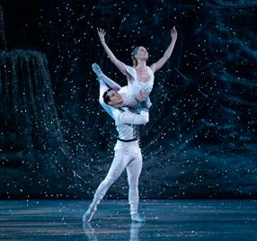 is transformed into a handsome prince who invites Marie on an enchanted journey through a swirling snowstorm to the Land of the Sugar Plum Fairy. Marie and her Prince are entertained by sweet dances from distant lands, a comical but fantastic Madame Derby and her jockeys, and a beautiful Rose, accompanied by her bouquet.