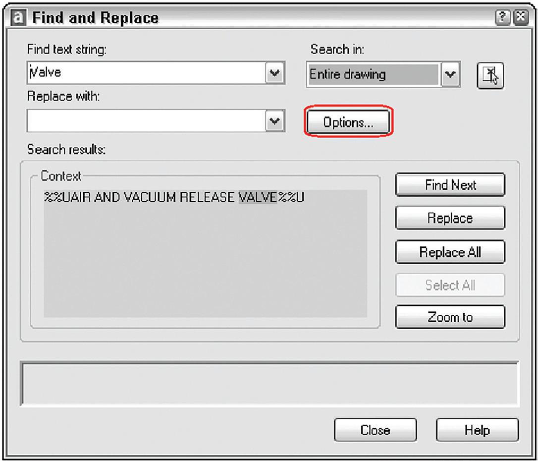 Now with AutoCAD’s new Find command, included are a number of Options such as searching for more than just Text objects but also Block Attributes, Dimensions, Hyperlinks and MText. This new and improved GUI would remain fairly unchanged from AutoCAD 2000 through 2010 (see Figure 31).