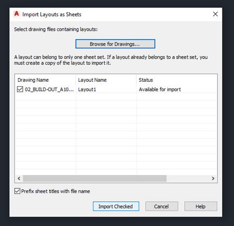 To re-associate a sheet in the sheet set, begin by clicking the View tab on the Palettes panel and select the Sheet Set Manager. In the Sheet Set Manager, open a sheet set. Now on the Sheet List tab, open the sheet that you want to re-associate. Next, in the Sheet Set Manager, right-click the sheet you wish to remove and then click Remove Sheet. Save the drawing. In the Sheet Set Manager, right-click the sheet set and click Import Layout as Sheet. In the Import Layout as Sheet dialog box, click Browse for Drawings and navigate to the drawing you wish to use. Click the check box of the layout to be re-associated as a sheet in the current sheet set and click Import Checked (see Figure 4).