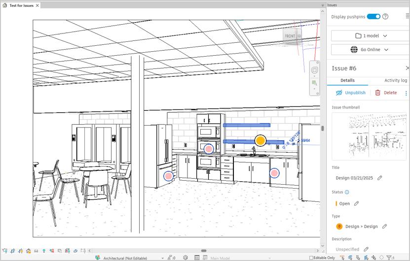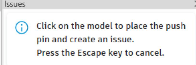 When an option is selected, you are prompted to click on the model to place “pushpins” and create an issue.