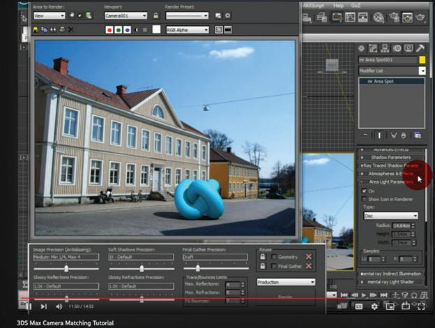 Then, for our simulation, we add a photo from a site into the background of our viewport (matching the photo resolution in our render settings). Using the Infraworks-generated surface and a virtual camera in 3ds max, we align the virtual camera to the photo based on the GPS location, camera height, and lens information stored in most modern camera photo files. Utilizing 3ds Max’s lighting and rendering capability, we can match the exact location and time, even include national weather data, to simulate the light and shadow that matches our photo’s location and information, helping the simulation to appear as realistic as possible. Photo data (available in the properties and generally default with most modern digital cameras) is essential. However, you can salvage your operation using various camera-matching techniques if you find yourself without that information. Here’s one method and example by Youtuber Alex Twigg online: https://youtu.be/4DJSYartbvU