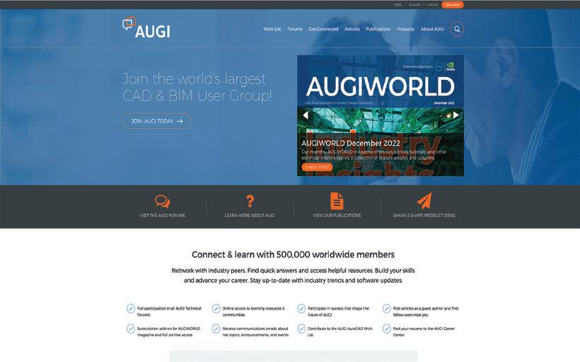 AUGIWORLD magazine is a benefit of specific AUGI membership plans. Direct magazine subscriptions are not available. Please visit www.augi.com/account/register to join or upgrade your membership to receive AUGIWORLD magazine in print. To manage your AUGI membership and address, please visit www.augi. com/account. For all other magazine inquires please contact augiworld@augi.com