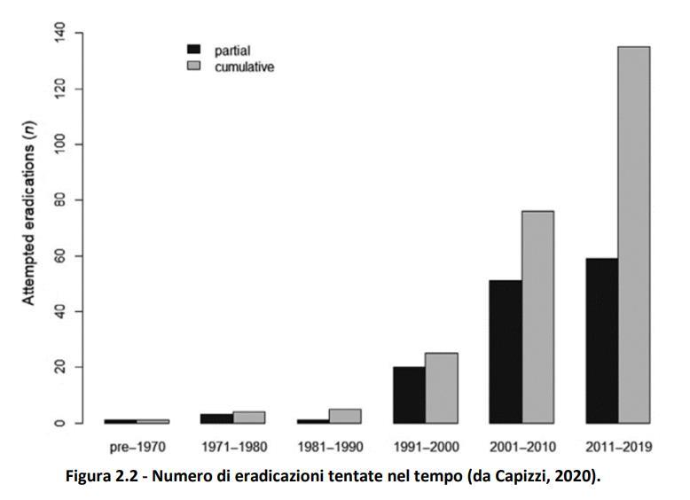 Species Eradications segnala 72 casi di eradicazione in ambienti insulari, di cui
