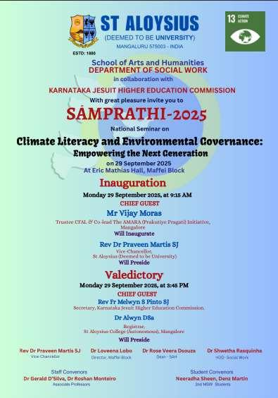 Dr Praveen Martis, SJ, VC of St Aloysius University, presided over the programme. Dr Alwyn DSa, Registrar of the College, Mr Christopher DSouza, Director, RangaAdhyayanaKendra,MsRoicy RekhaBraggs,StaffCoordinator,Dr Sandhya U. Sirsikar, Assistant Coordinator, Aliya Khan and Armaan Sheikh, the student coordinatorswereonthedais