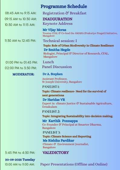 medicinal plants and preserving traditional knowledge. The dignitaries on the dais were then felicitatedwithmementosandfloral saplings as a token of respect and appreciation. Dr. Nivya V M deliveredavoteofthanks,bringing theproceedingstoagraciousclose.