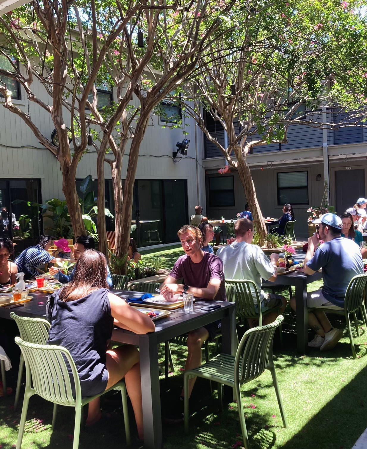 As manager, she hopes to provide the same Casa De Luz experience at the East Austin location as much as possible. They offer the same dining experience with community-style tables indoors and outdoors that encourage conversations and socialization among friends and strangers. The multi-use village also houses Sukha Yoga Austin, Ivy League Botany Club and Alchemy Organics.