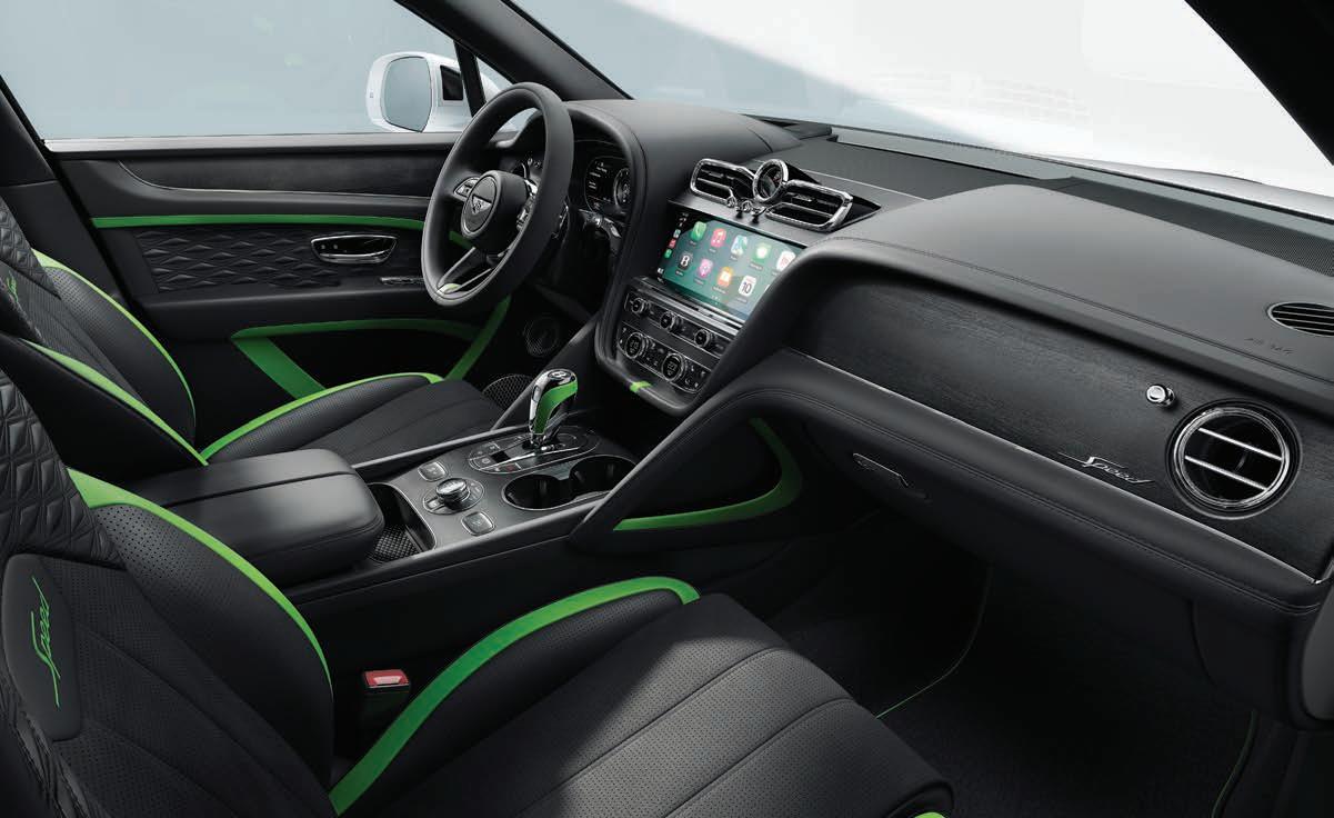 Inside, it’s a blend of highperformance cues and luxury comforts. Red stitching and accents adorn the dashboard, seats, and Alcantara-wrapped steering wheel. Carbon fiber trim completes the sporty feel, while Nismo branding appears
