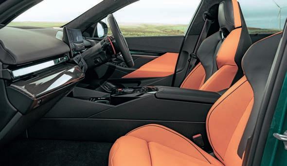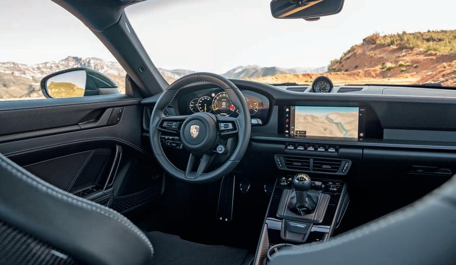 vehicle sharpens its responses— tightening the suspension, quickening the throttle, and opening the active exhaust for a throatier growl. Hold it longer, and you’re brought into Configurable Dynamics, where the driver can tweak every element of the driving experience, from the gear shifts to steering weight.