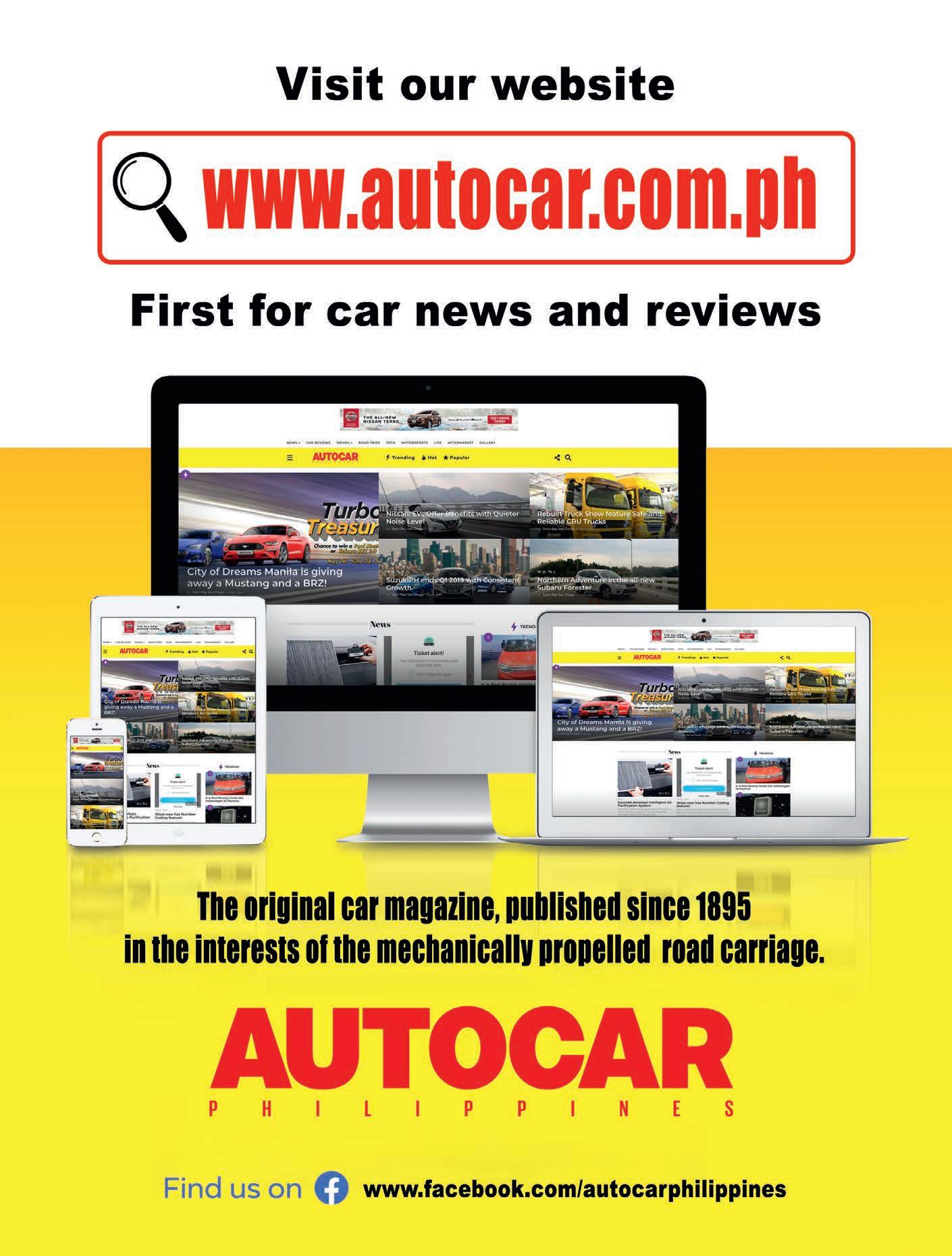The views and opinions expressed within Autocar Magazine are not necessarily those of Asian Media Ventures, Inc. or those of its contributors. While every care has been taken in the preparation of this magazine, the publishers cannot be held responsible for the accuracy of the information herein, or any consequences arising from it. In case of all product reviews, judgements have been made in the context of the product based on Philippines prices at the time of review, which are subject to fluctuation and only applicable to the Philippines market.
