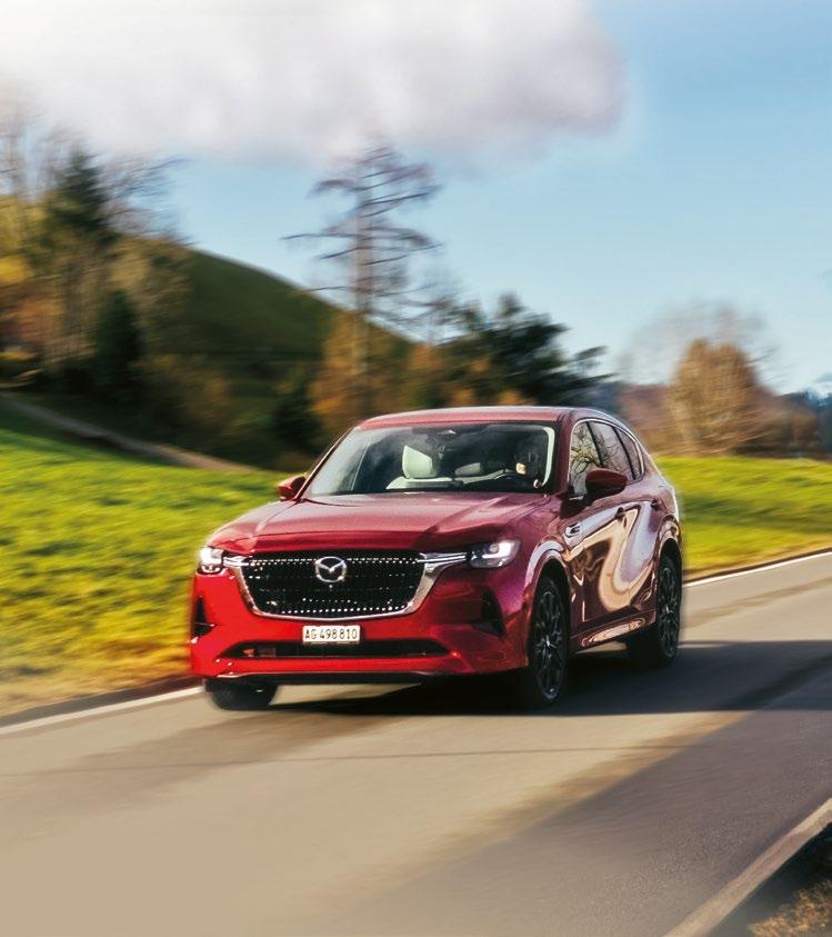 Modelle und Konditionen gemäss dieser Broschüre. Sämtliche Angaben gültig bei Drucklegung (01.03.25), Preis- und Konditionsänderungen bleiben vorbehalten. Weitere interessante Angebote bei Ihrem Mazda-Händler. Die abgebildeten Modelle können von in der Schweiz verfügbaren Modellen abweichen. Die technischen Daten stellen Näherungswerte dar. Die dargestellten Ausstattungsmerkmale können Serien- oder Zubehörausstattung oder auch auf einigen Versionen nicht erhältlich sein. Genauere Informationen erhalten Sie bei Ihrem Mazda-Händler oder auf unserer Website. Mazda (Suisse) SA übernimmt keinerlei Gewähr für die Korrektheit und Vollständigkeit der im Dokument enthaltenen Informationen und schliesst jegliche Haftung aus.