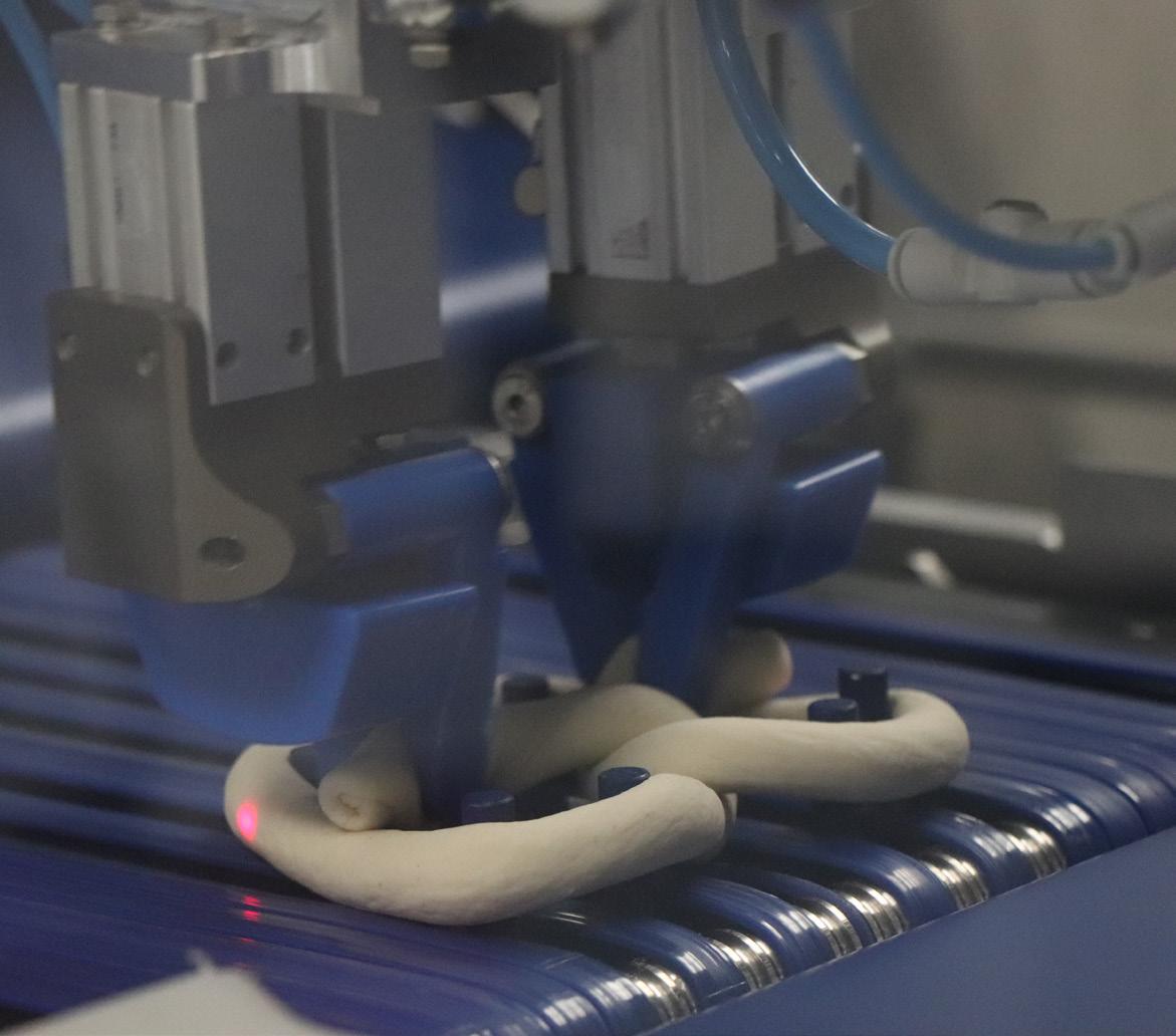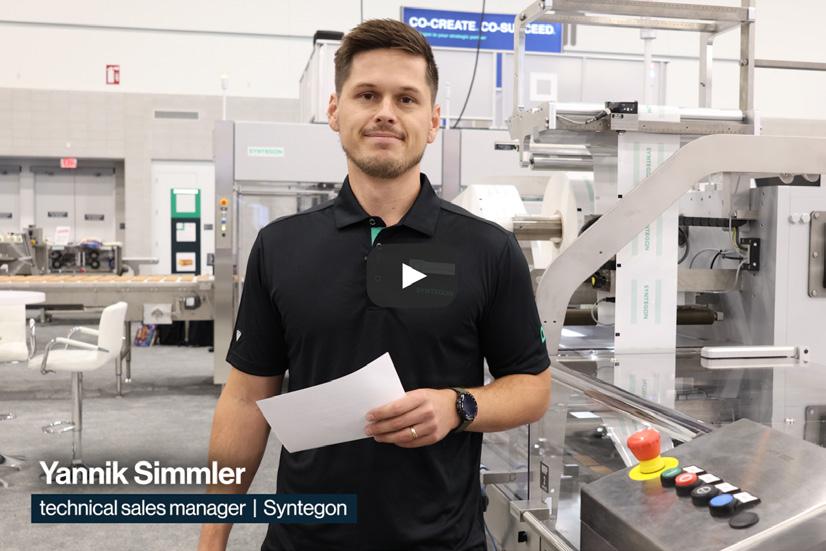Yannik Simmler, technical sales manager, showcases the applications of Amplified Heat Sealing technology in the company’s flowwrapping solutions. www.syntegon.com