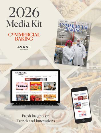 Commercial Baking is published by Avant Food Media, 1703 Wyandotte St., Suite 300, Kansas City, MO 64108. Commercial Baking considers its sources reliable and verifies as much data as possible, although reporting inaccuracies can occur. Consequently, readers using this information do so at their own risk. Commercial Baking is distributed with the understanding that the publisher is not liable for errors and omissions. Although persons and companies mentioned herein are believed to be reputable, neither Avant Food Media nor any of its employees accept any responsibility whatsoever for their activities. Commercial Baking magazine is printed in the USA and all rights are reserved.