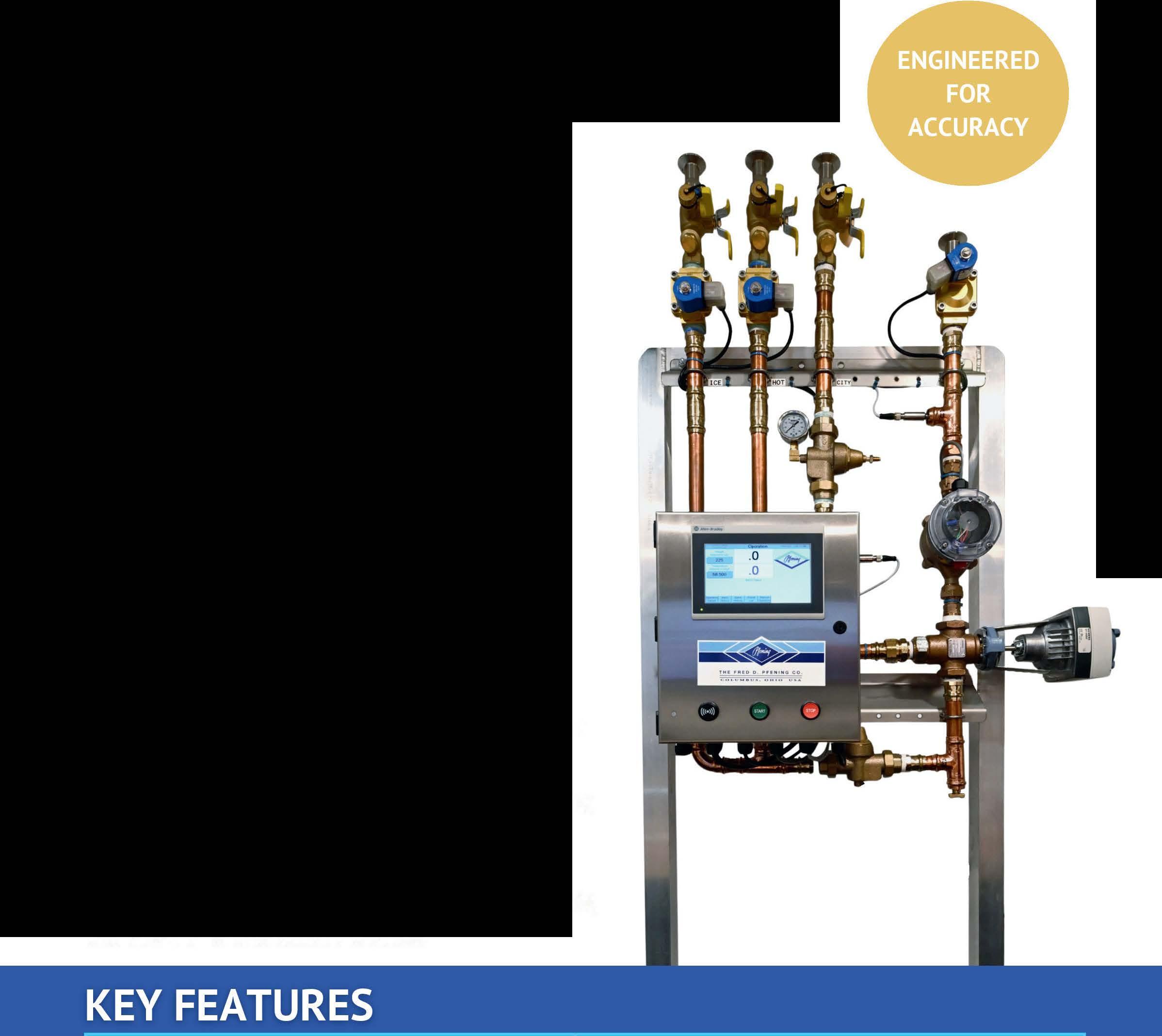 Pfening's new generation Enviroblender (EBM 7) brings unmatched precision and sustainability to your process. With a true plug-and-play design, this rugged system ensures accurate water metering, consistent temperature blending, and zero waste operation, saving resources and streamlining production.