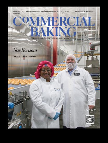 Commercial Baking ISSN 2767-5319, / USPS Publication Number: 25350 is published in February, April, June, July, August, October and December, in print and digital formats by Avant Food Media, 1703 Wyandotte St., Suite 300, Kansas City, MO 64108. Periodicals Postage Paid at Kansas City, MO, POSTMASTER: Send address changes to Commercial Baking, c/o Avant Food Media, 1703 Wyandotte St., Suite 300, Kansas City, MO 64108.