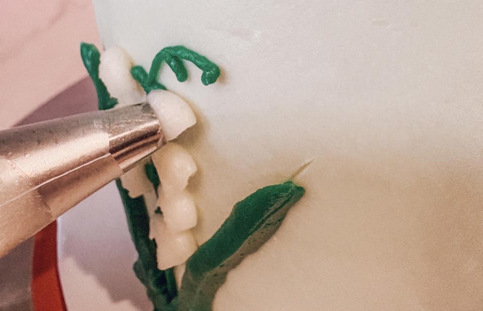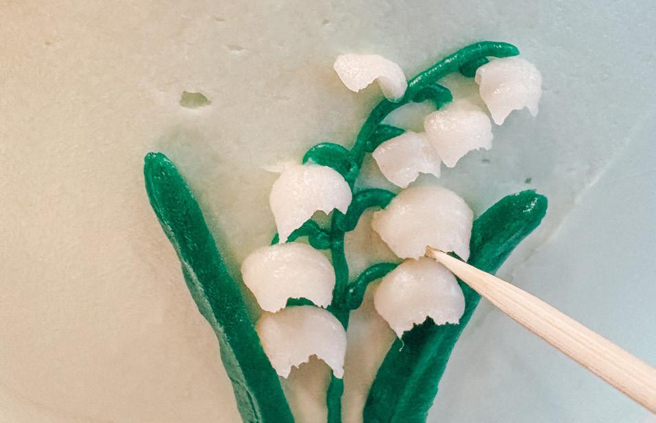 CRAFT TO CRUMB PARTNERED WITH ALISA WOODS OF SIFT N SPRINKLE TO INSPIRE BAKERS TO DIVERSIFY THEIR FLOWER PIPING WITH SPECIALTY BLOOMS, SUCH AS A LILY OF THE VALLEY.