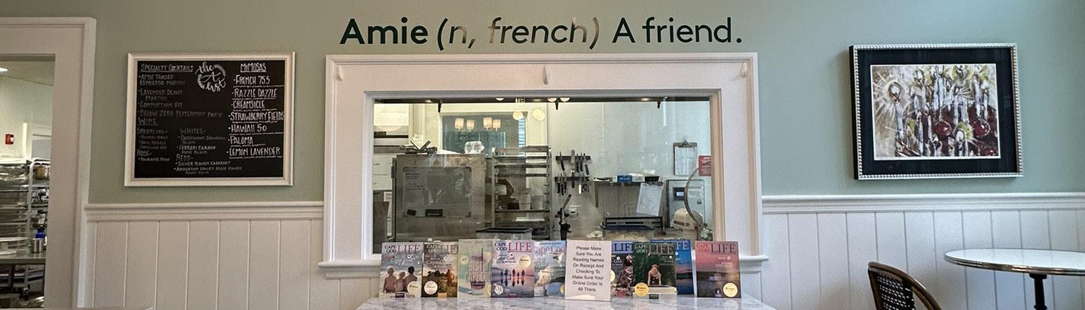 When AMIE Bakery opened its first location in December 2014, it was in a tiny space on Osterville’s Main Street “down in the village,” an area that meets expectations of idyllic Cape Cod: narrow, tree-lined streets; quaint storefronts; trendy boutiques; and tons of foot traffic.