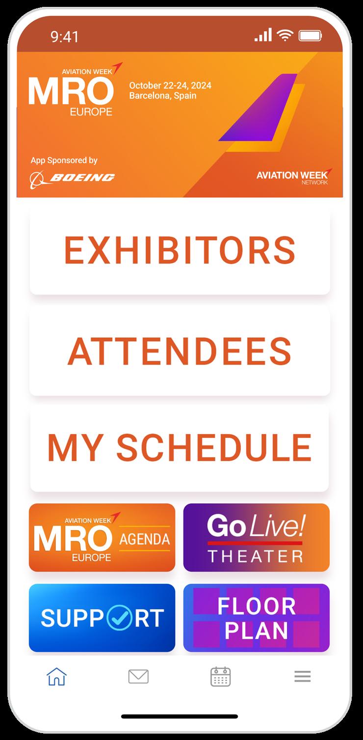 To optimize your time at event, be sure to download and utilize the MRO Europe app. In addition to containing the full attendee list, the app allows you to plot routes around the show floor, connect with attendees and add conference sessions to your calendar. Be sure to check and respond to any of your messages and meeting requests to connect with fellow attendees. Search MRO Europe in the app store and login with the email used during registration. For any help, speak to staff at customer services or at the Aviation Week booth.