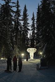 FAIRBANKS, ALASKA , hosts the World Ice Art Championships from mid-February through the end of March. Artisans from around the globe fight against frost and time to complete their masterworks by the championship deadline. Magnificent elephants emerge from the clear blocks, seemingly strolling through the woods of the Tanana Valley Fairgrounds. A school of crystal-clear salmon “swim” upstream. Polar bears, battling elk and even soaring fighter jets materialize from the glass-like ice. The event is one of the largest art exhibitions in the world and boasts more than 80 exquisite ice sculptures created by international carvers.