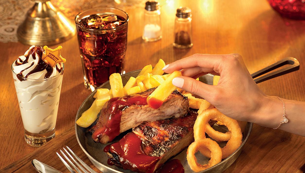 Ata bien tu caballo y descubre The Lucky Nugget, el lugar favorito de los vaqueros para picar algo, tanto si buscas una deliciosa comida americana/Tex-Mex como algo rico para merendar a media tarde.