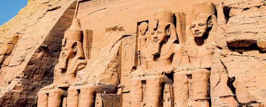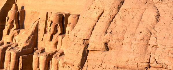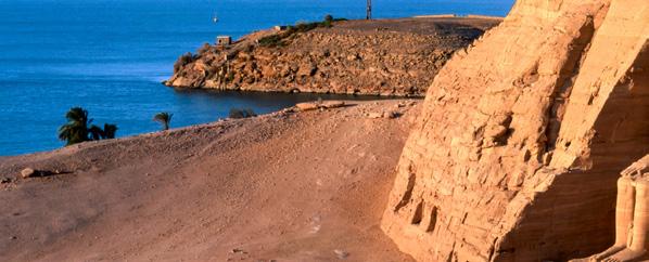 Junto al lago Nasser, Abu Simbel, está formado por los templos tallados en roca de Ramsés II y su primera esposa Nefertari.