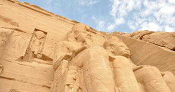 Este complejo de 3.400 años de antigüedad tardó 20 años en realizarse y es una obra maestra de la ingeniería del antiguo Egipto. Maravíllate ante los dos templos, embellecidos por los Colosos de Ramsés II y su esposa Nefertari, y recorre las salas adornadas con estatuas y los relieves de batalla del Gran Templo. Ambos templos fueron trasladados en 1960 a su emplazamiento actual para protegerlos de las inundaciones tras la construcción de la presa de Asuán.