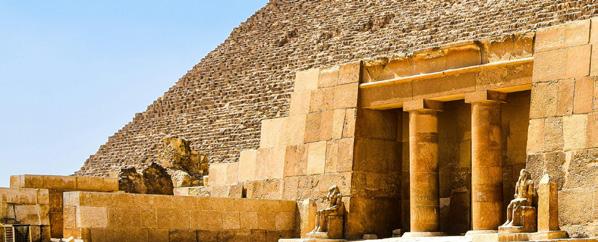 Consideradas una de las Siete Maravillas del Mundo Antiguo, y declaradas oficiosamente la octava del Mundo Moderno, las pirámides de Keops, Kefrén y Micerinos se encuentran unos 20 kilómetros al sur de El Cairo y forman parte de la Necrópolis de Guiza, junto a la Gran Esfinge y otros templos y pirámides de gran antigüedad y aún mayor relevancia histórica.