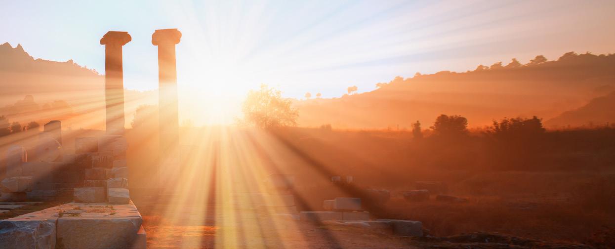 Contempla monumentos antiguos como la Estatua de Tebas desde arriba mientras navegas por la ciudad iluminada por el sol de la mañana.