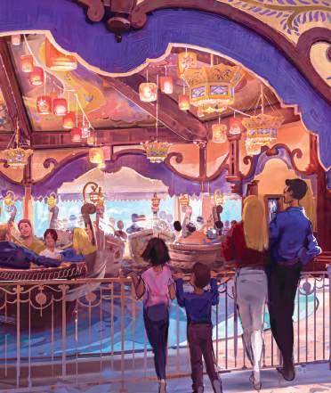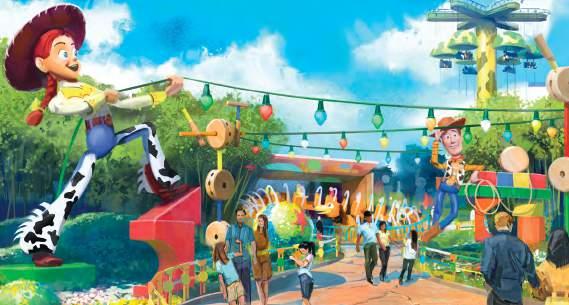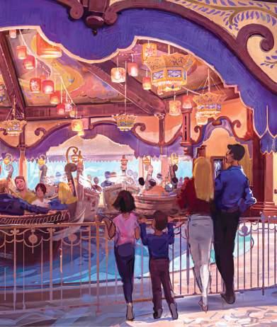 Passeia por esta avenida pitoresca e vais descobrir muitas novidades, incluindo a atração Rapunzel Tangled Spin, onde as famílias giram em barcos no meio de lanternas douradas, vários locais para comer e beber, e jardins artísticos com entretenimento único inspirado nas histórias da Disney e da Pixar.