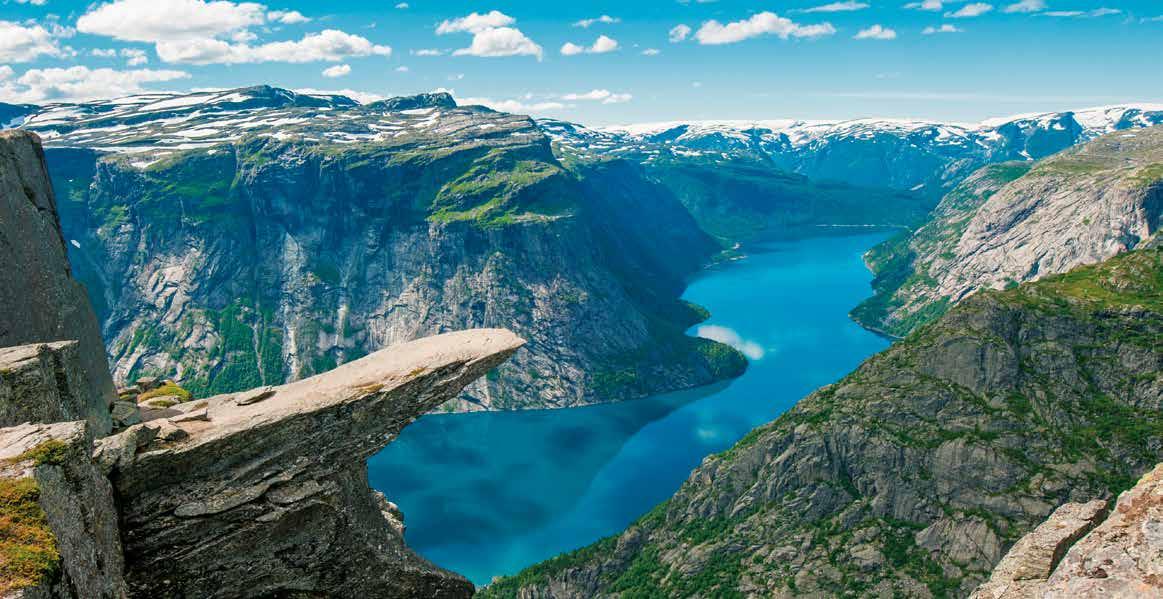 experiencia inolvidable para los amantes de la naturaleza y la aventura. Una ascensión a pie que nos llevará hasta la cima a 604 metros, donde seremos recompensados con una vista impresionante sobre el fiordo. Para esta excursión es necesario un calzado adecuado, buena forma física y condiciones meteorológicas óptimas. Regreso a Stavanger y tiempo libre para seguir disfrutando de su puerto; las típicas casas de madera pintadas de blanco en Gamle Stavanger, la parte más antigua de la ciudad; y Ovre Holmegate o “calle de los colores”, repleta de encantadores cafés y boutiques. Alojamiento.