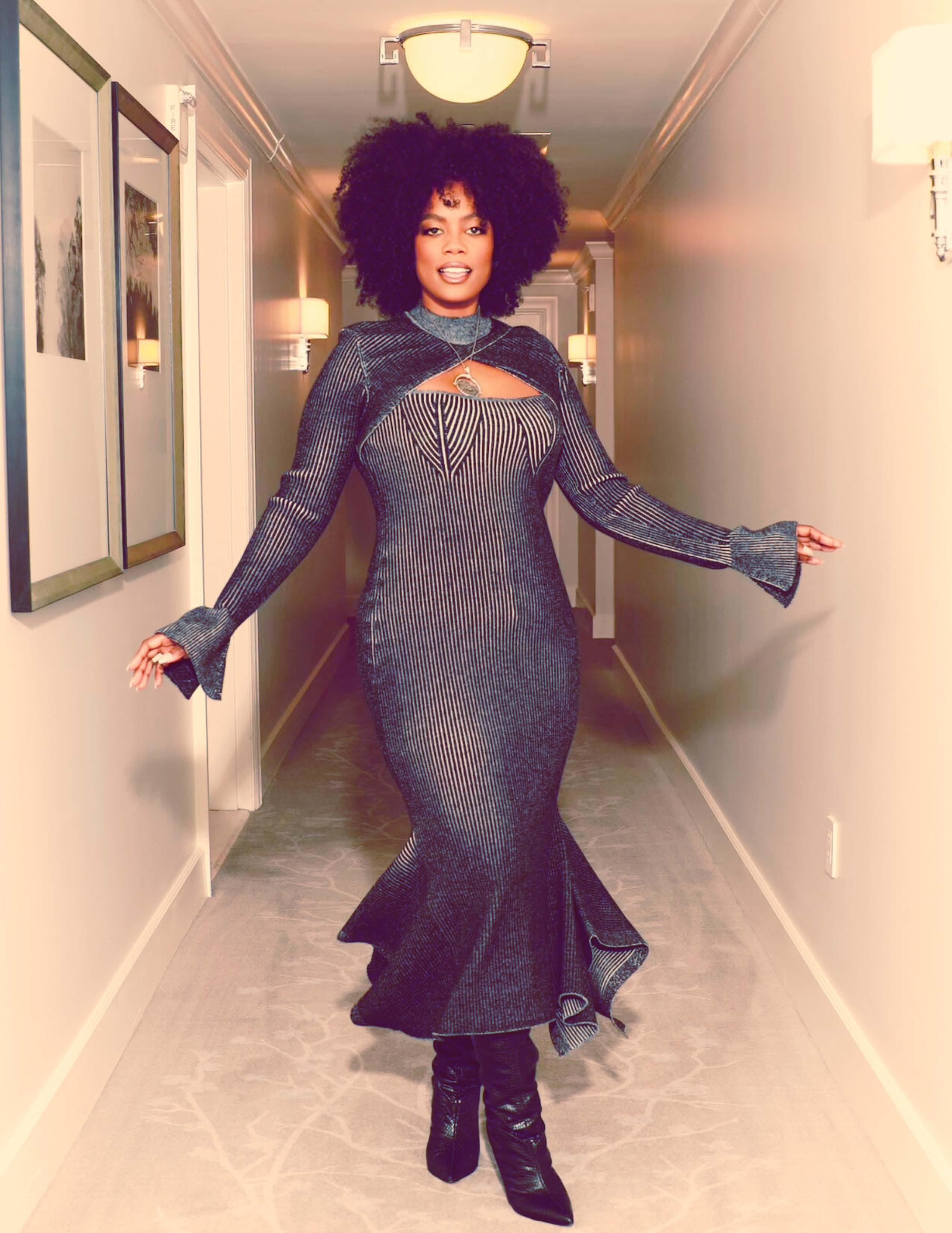 NOVI: (continued) It's hard for women to show up as themselves, but it's hard for Black women or minority women to show up as their full self. Whether you have kinks, curls, whether you have straight hair, blue eyes, dark eyes, we're always altering something about ourselves. I feel that the Black excellence means being authentically you, whatever state you're in. That's for me on and off the screen. The way that I embody that is by allowing myself to feel all of my feelings. I allow myself to go through all of my cycles. I'm not scared of me, and that is what Black excellence is to me.