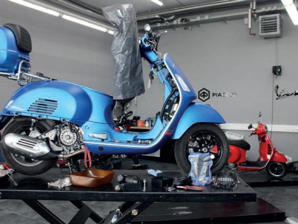 Elektro-Motorrad-Marke Zero. Das bekannteste Produkt ist natürlich die Vespa, die auch die Schauräume sowie die Werkstätten dominiert. Dementsprechend herausfordernd ist das Werkstättengeschäft: „Diese Saisonalität und Wetterabhängigkeit hat man natürlich nur im Zweiradbereich“, so Schwab. Mit einem Schlag ist man von leer auf voll. „Umgekehrt nehmen die Leute die Termine nicht so genau und kommen einfach nicht, wenn es an dem Tag regnet.“ So ist grundsätzlich mehr Improvisation gefragt. Das liegt auch an der hohen