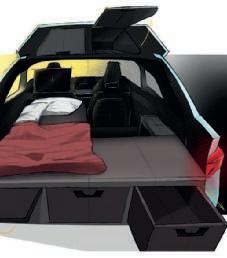 Nicht das einzige Detail, das einem den Marvel R sympathisch macht. Ausstiegs-Warnlampen sind in allen vier Armlehnen angebracht und dank Vehicle-to-LoadFähigkeit (V2L) lässt sich der Strom aus dem Auto für nützliche Outdoor-Aktivitäten nutzen. •