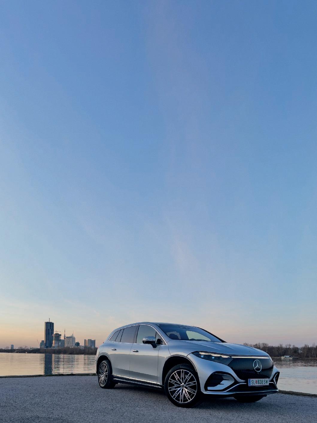 Der hebt nicht ab Wenn’s ums Fahren geht, darf das EQS SUV als Benchmark der Klasse gesehen werden. Unebenheiten werden beinahe völlig weggebügelt, wo andere Autos gefühlt fast abheben, bleibt der große Stern stoisch ruhig. Auf unserer gemischten Verbrauchsrunde kamen wir bei 15 Grad Außentemperatur auf einen Schnitt von 19,6 kWh, was umgelegt auf den 108,4 kWh großen Akku eine Reichweite von 550 Kilometer bedeutet. Im sorglosen Alltagsbetrieb werden es um die 450 Kilometer sein. Mit 200 kW DC geht das Aufladen flott, zehn bis 80 Prozent in 31 Minuten. •
