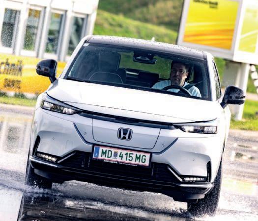 Ich habe mich speziell für den e:Ny1 angemeldet, nachdem ich privat ein größeres E-SUV fahre und einmal etwas Kleineres ausprobieren wollte. Entsprechend toll war es für mich, dieses Auto in Extremsituationen zu testen. Schon die Sitzposition gefällt mir, es gibt kein Knistern und Knastern aus dem Armaturenbrett und die Verarbeitung ist als positiv zu vermerken. Die Fahrleistungen sind den 204 PS des Elektromotors, der seine Kraft an die Vorderachse überträgt, entsprechend. Der e:Ny1 ist für mich ein vernünftiges Fahrzeug, gleichzeitig aber nicht untermotorisiert. Für die Stadt etwa ein ideales Auto. Die Assistenz ist so fortgeschritten, dass man fast nicht mehr spürt, dass geregelt wird.