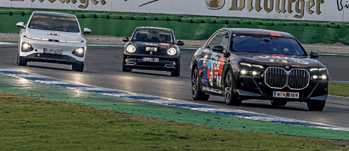 Klassensieg und 12. Gesamtrang Egal, wir durften uns nach 198 Runden nicht nur über den Klassensieg freuen sondern haben unter 32 Startern auch den 12. Gesamtrang geholt. Gewonnen hat übrigens das Team mit dem Xpeng P7 Long Range (216 Runden) vor einem Kia EV6 (216 Runden) und dem nagelneuen Kia EV3 (215 Runden), die ersten fünf Autos stammten allesamt aus der Gruppe C. Unterm Strich war das Rennen nicht nur ein riesiger Spaß, sondern auch Beweis, dass die E-Mobilität mittlerweile voll alltagstauglich und auch langstreckenfähig ist. Wer selbst bei der zweimal jährlich durchgeführten ADAC e-competition mitfahren möchte, kann sich auf der Website www.24ecompetition.com anmelden. •