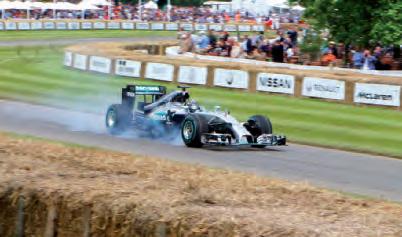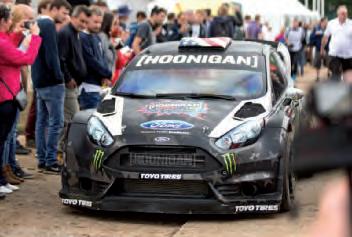Wenn im gepflegten Schlosspark ein ausgewachsener DakarKamazTruck quer um die Ecke kommt, dann ist es wieder einmal Zeit für das Festival of Speed auf dem riesigen Anwesen von Lord March. Was im Jahr 1993 noch deutlich kleiner ausgelegt war, hat sich zu einem MotorEvent der Superlative entwickelt. Heuer wurden über 250.000 (!) Besucher an vier Tagen gezählt, selbst wenn das Wetter nicht immer mitspielte. Ford war nicht nur mit dem LeMansKlassensiegerauto GT40 beim HillClimb vertreten, sondern auch mit zahlreichen anderen Modellen. Besonders beeindruckend der Amerikaner Vaughn Gittin Jr., der einen Ford Mustang (großes Bild) quer über den Kurs trieb und die Besucher mit Burnouts zum Jubeln brachte.