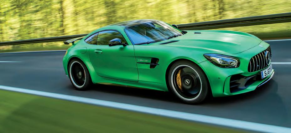 Leistung ist kein Thema, so lang man genug davon hat. So oder so ähnlich könnte auch das Credo gelautet haben, als Mercedes sich dazu entschloss, vom AMG GT eine besonders kräftige Variante zu entwickeln, die auf den Rennstrecken dieser Welt Porsche Turbo S, Ferrari 488 GTB, Nissan GTR und Co die Rücklichter zeigen soll. Das ist wohl auch der Grund dafür, warum man in Zuffenhausen beziehungsweise in Affalterbach, dem Sitz des HausundHofTuners AMG, den GT R aus der Taufe hob und ihm auf dem Nürburgring, der grünen Hölle, den Feinschliff verpasste. Das 585 PS starke grüne Monster wurde Ende Juni erstmals der Öffentlichkeit präsentiert und von Lewis Hamilton persönlich um die historische Rennstrecke in Brooklands geschossen. Und der zeigte sich vom V8Renner, der maximal 318 km/h schnell rennt und binnen 3,6 Sekunden auf Tempo 100 beschleunigt, begeistert. Das liegt wohl auch daran, dass er einer der wenigen ist, der die in neun Stufen einstellbare Traktionskontrolle tatsächlich beherrscht ...