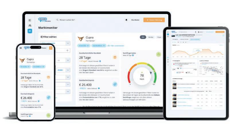 den kann. Wir wollen auch mithelfen, Transparenz zu schaffen, damit der Händler die unternehmerisch richtigen Entscheidungen treffen kann. Reissigl: Wir sind überzeugt, dass Daten zu essenziellen Lösungen führen, die echten Mehrwert bringen: Die Fahrzeuge drehen sich schneller, das ist gut für den Händler, gut für den Konsumenten und gut für unsere Plattform.