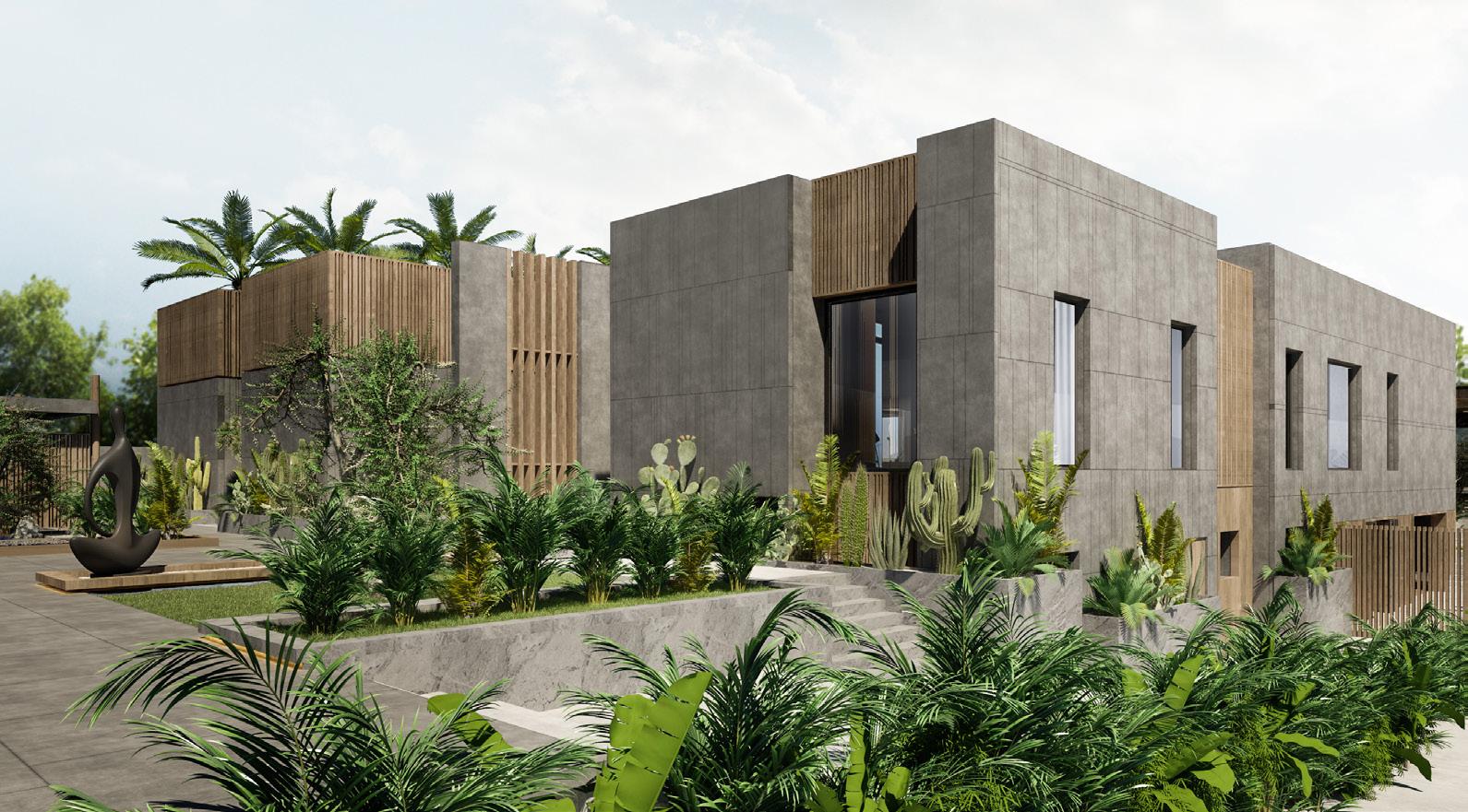 Responsable de l›architecture et de la conception du paysage. Le concept principal était de créer un bâtiment emblématique mais homogène, où les résidents ressentent l›unicité et se distinguent dans chaque détail de la manière la plus minimale possible, tout en se sentant connectés à la nature grâce à l›utilisation de matériaux naturels et de couleurs terreuses.