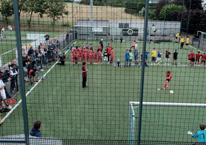 Le terrain synthé�que «Am Dielchen» sera divisé en quatre pe�ts terrain s de même taille, les matchs seront tous joués sur des buts avec les dimensions 5 x 2 mètres Le détail des rencontres ainsi que les horaires sont repris en annexe