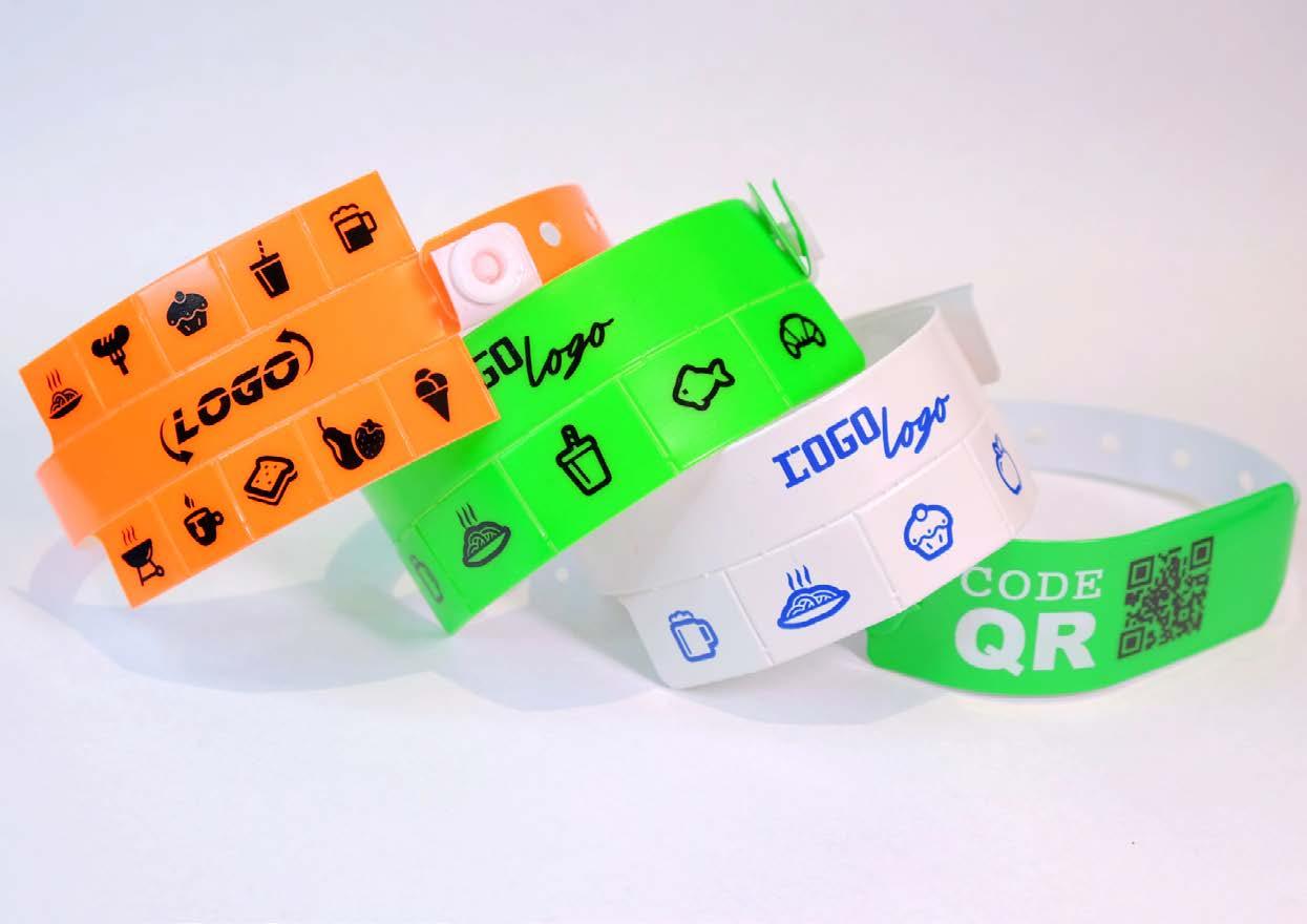 Wristbands and tokens are a practical and inexpensive form of ticketing, event participant identification and cashless service at events and picnics. A wide range of printing options such as logos, individual numbering, barcodes, 2D codes, QR codes or pictograms provide interesting marking possibilities. Wristbands and tokens are also a great advertising medium.