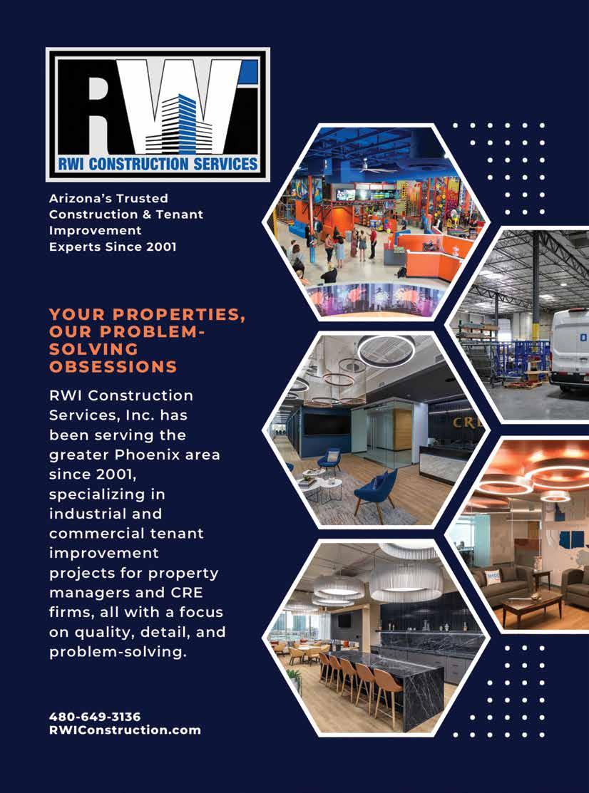 AZRE: Arizona Commercial Real Estate is published bi-monthly by AZ BIG Media, 3101 N. Central Ave., Suite 1070, Phoenix, Arizona 85012, (602) 277-6045. The publisher accepts no responsibility for unsolicited manuscripts, photographs or artwork. Submissions will not be returned unless accompanied by a SASE. Single copy price $3.95. Bulk rates available. ©2025 by AZ BIG Media. All rights reserved. No part of this publication may be reproduced or transmitted in any form or by any means, electronic or mechanical, including photocopying, recording or by any information storage and retrieval system, without permission in writing from AZ BIG Media.