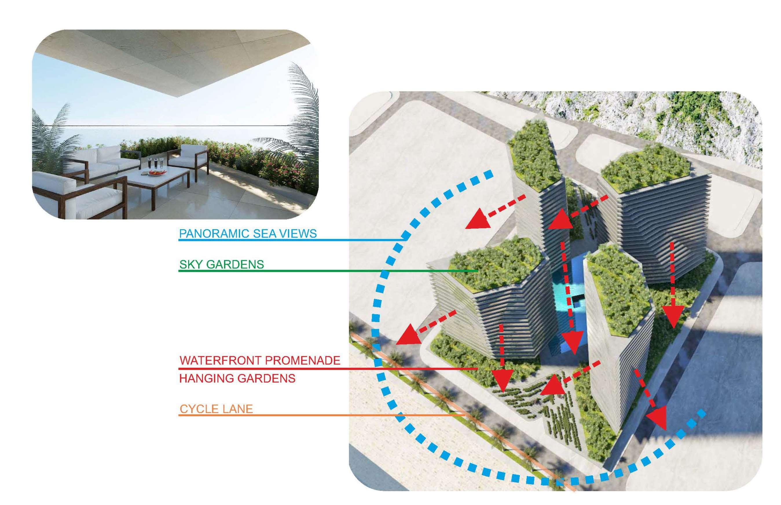 EmplenafrentedemardacostaEstedeGibraltar,juntoàCatalan Bay,estamosadesenvolveroprojetodedoisedifíciosde habitaçãomultifamiliarde4e5estrelas.