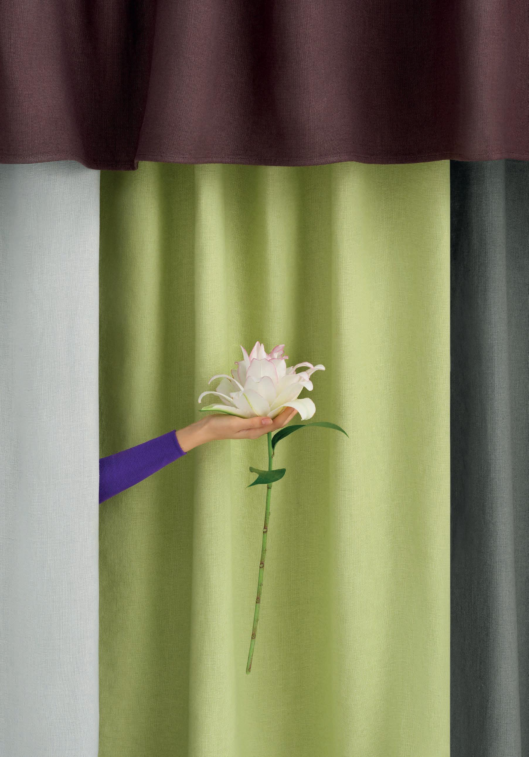 sees textile as the preferred interface for the tactile exploration of the domestic environment: fabrics serve life to veil and highlight, to shelter and comfort, and ultimately to always celebrate the senses.
