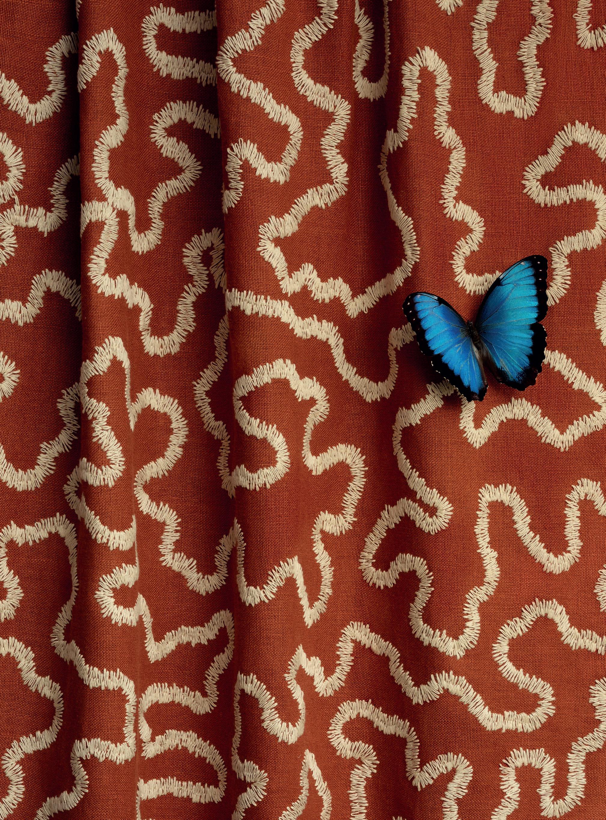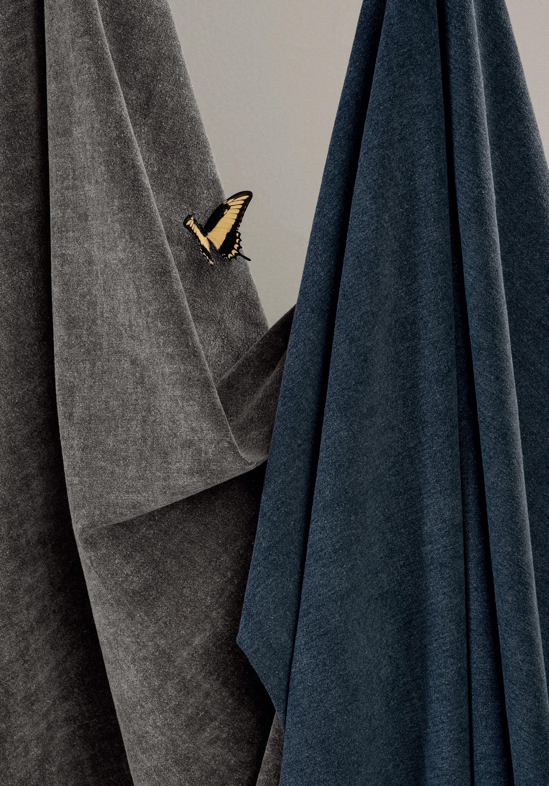 Le fibre naturali rimangono la base lino, canapa, cotone, lana mentre il linguaggio tattile si apre a nuove densità, ritmi e texture. Accanto a queste, fibre sintetiche selezionate sono utilizzate non solo per garantire resistenza e prestazioni, ma anche per aumentare il ventaglio di proposte. L'esperienza tattile si spinge oltre. Vik è compatto, liscio, quasi cerato. Sassi è pieno, voluminoso, morbido. Visivamente, Daedalus estende la ricerca di Kieffer alla decorazione geometrica con un motivo derivato da un originale del XVIII secolo e reinterpretato. Questi tessuti non imitano la natura, ma da essa derivano. I loro nomi Kemet, Vik, Daedalus, Wide Nile, Scriba richiamano geografie lontane e antiche mitologie, ricordandoci che la produzione tessile è sempre una forma di narrazione. E, come sempre, Kieffer lascia che i materiali parlino per primi. Dalle ciniglie scultoree alle tende leggere caratterizzate da una trama d’opera fiammata, la collezione Untitled III appare allo stesso tempo radicata e audace: attenta ai dettagli, “onesta” nella sua costruzione, inconfondibilmente Kieffer.
