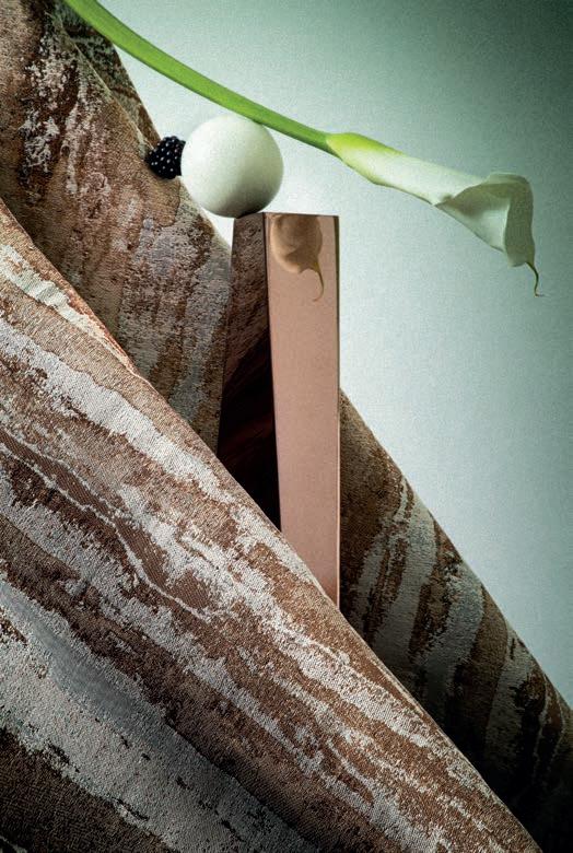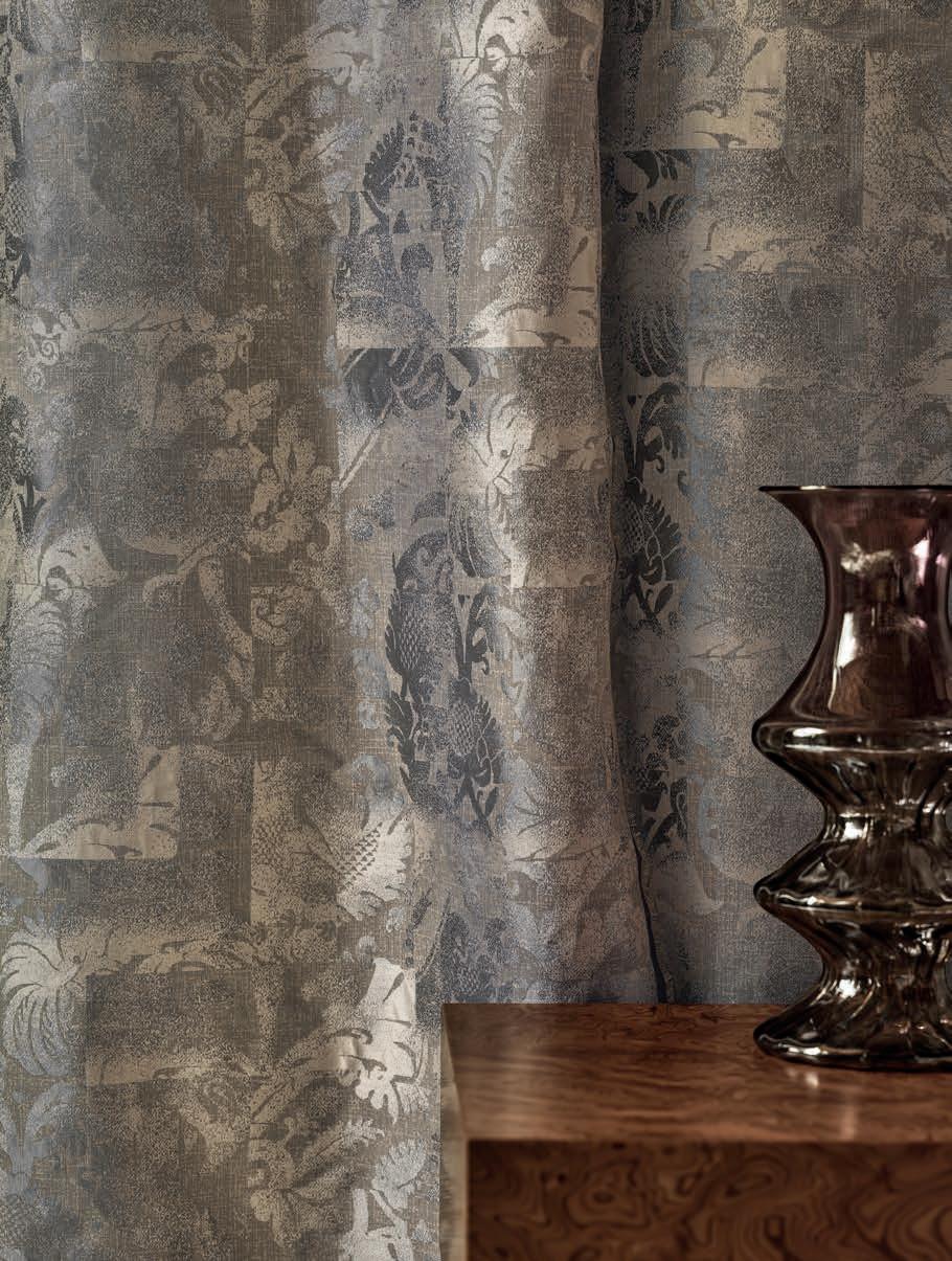 Simple fragments become the source of inspiration for new creations, made up of new warps and new wefts. The fabric appropriates effects typical of other materials - the reflections of glass, the lustre of metals, the consistency of materials used in architecture.