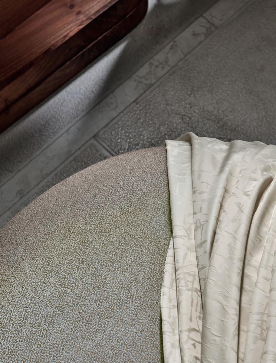 The irregular surface is reminiscent of the surface of the moon, but also of the materials used by Carlo Scarpa for his architecture in the 1960s. Moon Promenade has a warp in evo nylon, an eco-sustainable yarn used by Rubelli for some years now.