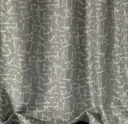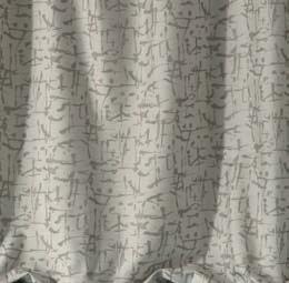 Textured curtain. A sort of mysterious score made up of free marks, like the notes produced by a saxophone. The marks, matte, stand out against the satin ground, especially in the grey version. A silky-looking curtain with a very appealing hand.